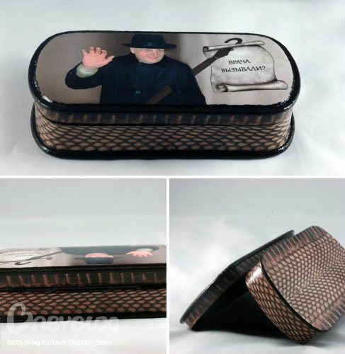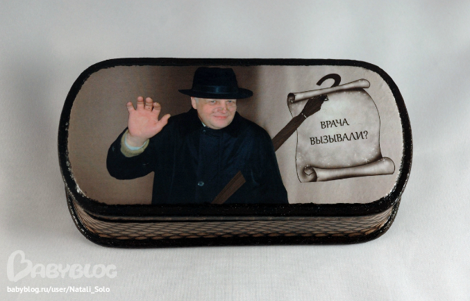 ДекупажЭтот футляр делался на заказ и уже передан заказчице. Изначально было 2 пожелания: 1. использовать фотографию одариваемого 2. сделать надпись "Врача вызывали?".Фото было самым обычным, просто мужчина на фоне обычной входной двери. Я когда увидела, даже растерялась, никак не могла представить как же обыграть все это:))) Претерпело изменение все, кроме самого мужчины:) В итоге получилось именно то, что я хотела и превзошло ожидания заказчицы, чему я несказанна рада. Детали под катом.