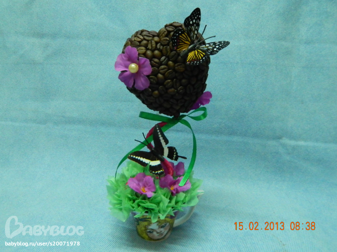 кофейное сердце высота 26 см, кофе в два слоя, 600 руб