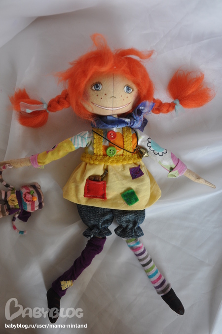 Это уже моя вторая Пепп (кто не знает, начала я шить ккол имено из-за неё!). Потому как мы с дочкой мечтали об этой кукле, и нигде её не купишь. Тогда я не наша ни одной рукодельной Пеппи, которая бы советсвовала бы моим прествления о ней. Но вот это - оно! Получилось! Кукла успешно остается жить у нас)) Снова оставляю себе на старость, это моя поруга по жизни)) Супер-оптимистка и никогда не взрослеющая Пеппи)))