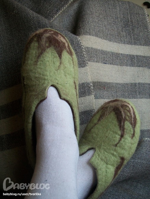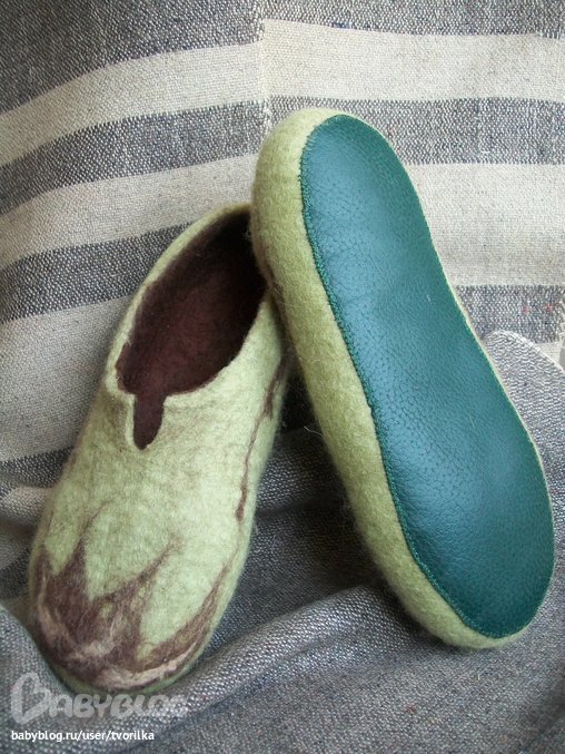 Вот такие тапочки я валяю из 100% шерсти. Они очень мягкие, теплые и удобные. Могут и больным суставам помочь, овечья шерсть лечит своим натуральным теплом и помогает справиться с болью и судорогами.