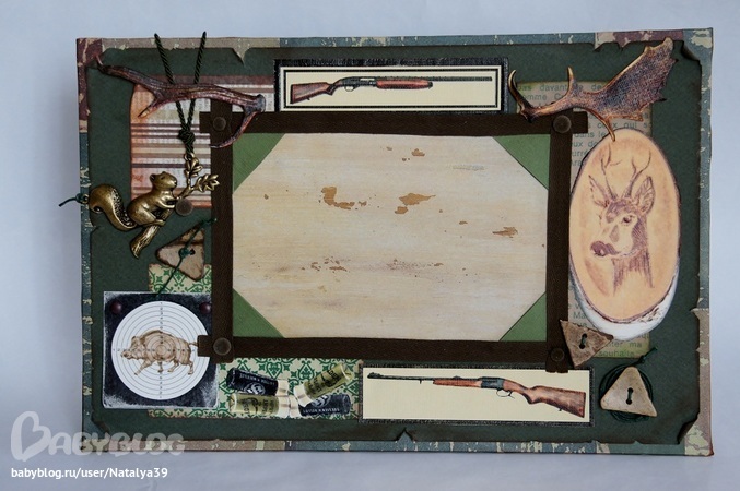 Какя классная задумка! Такие интересные рамочки у вас получились! Сижу разглядываю и удивляюсь! Столько деталек! А, рожки на рамке для охотника - это как???