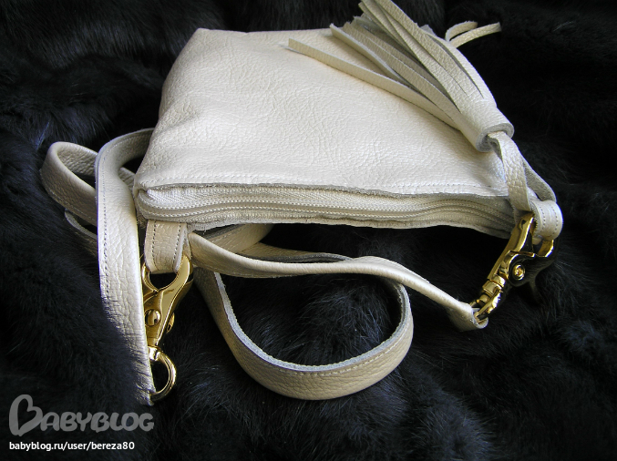 Изделия из кожиВот попробовала первый раз сшить из кожи небольшую сумочку на длинном ремешке.Кожа плотная,но шилось великолепно,я даже не ожидала,что моя старая машинка ее возьмет.Кожа красивого перламутрового бежевого оттенка.Подклад атлас такого же оттенка.