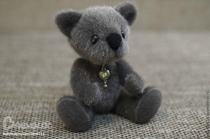 Игрушечный мир - животныеВот получился такой медвежонок,немного серьёзный,но невероятно обаятельный.Сшит из искуственного меха.Крепление на болтах.Носик свалян из шерсти.Сшит полностью вручную.Сам не стоит.