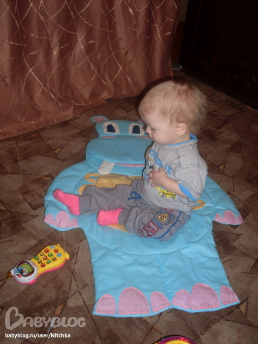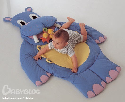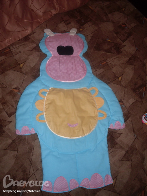 Ткань хлопок, внутри синтепон, длина 110см, ширина 75см.Хотела сделать коврик побольше, но голубая ткань нужного качества и цвета была только шириной 90см, поэтому готовый вариант получился 75см.