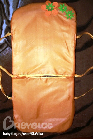 Внутри лист поролона. Материал очень легко и хорошо моется, для меня очень большой плюс!! (не пришлось шить запасной)))