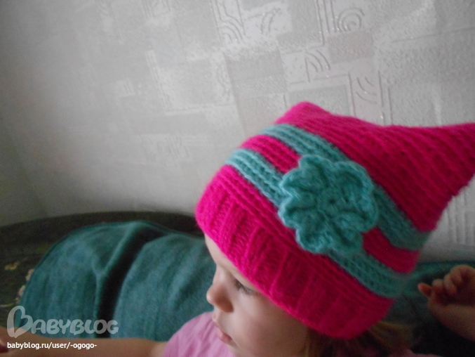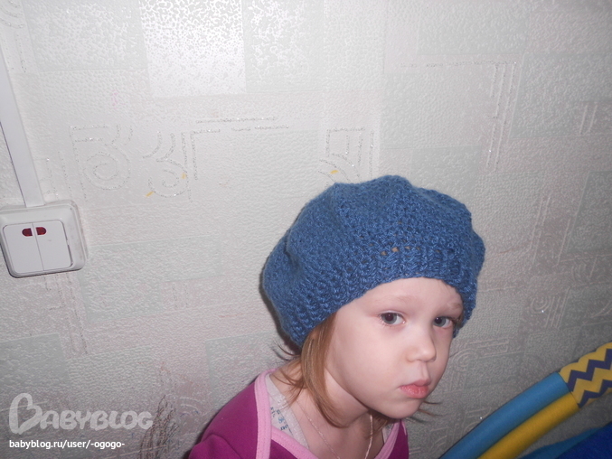 это я себе на весну беретик связала, тут дочка примеряет, еле сфоткала)))