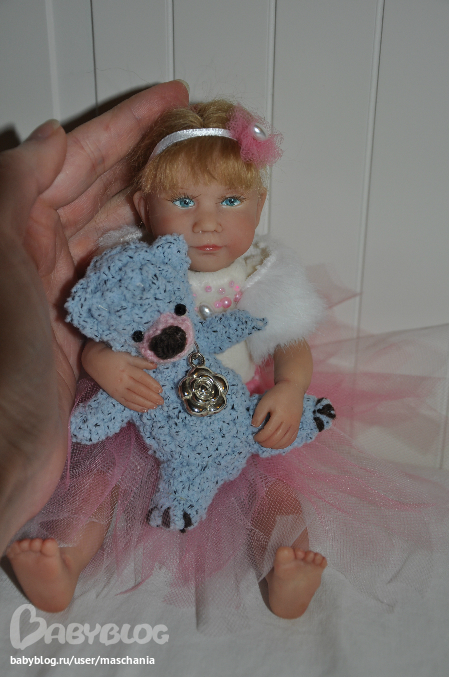 Куколка 21 см, слеплены из Ливинг долла, тельце утяжелено гранулятом, подвижн<ые ручки и ножки. Роспись акрилом для реборнинга. мишутка вязался крючком.