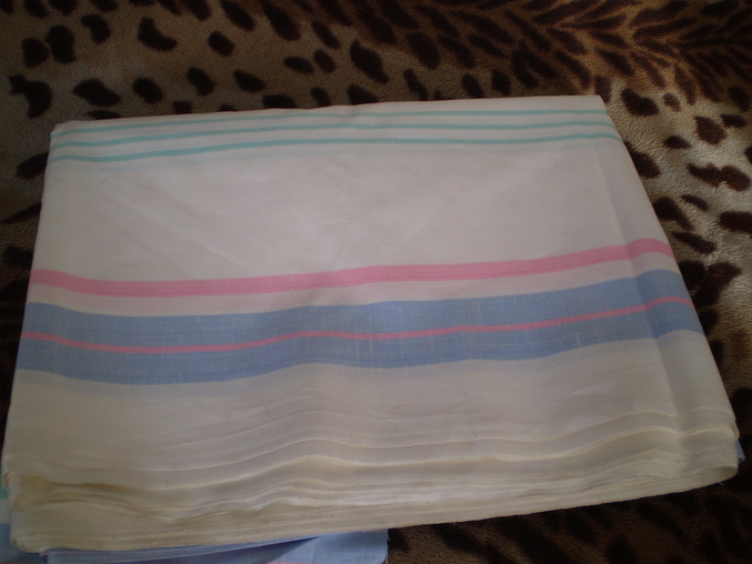 1. Самый здоровущий отрез шириной 1,5 м длиной 13 м, массой аж на 5 кг ,очень плотный-преплотный, мне кажется, раньше из таких простыни плотные шили. (забрали)