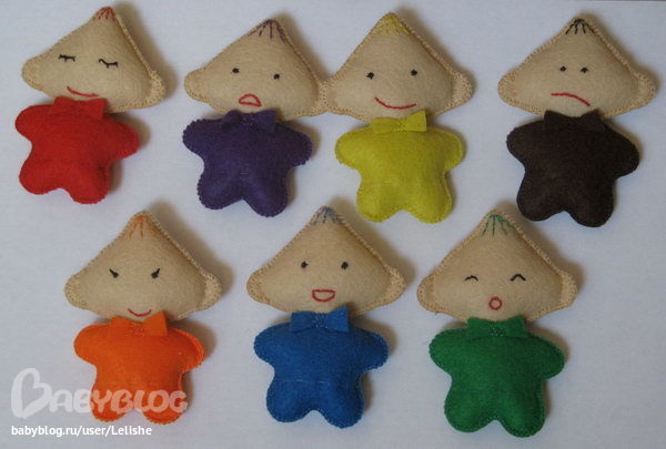 Оль, а шапочки к ним нельзя как то приделать??? Типа усложнение задачи, приделать к каждому шапочку его цвета))) Ты умничка!!! Мне приятно тебе знать!!!!!!!!!!!!! и гордо)))