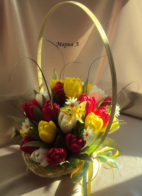 Цвета - как из моего детства! Мне такие дедушка в детстве на день рождения приносил. До сих пор - это мое любомое сочетние для тюльпанов. Вот про эти я и говорю, что хочу научиться делать! У твоих форма - самая настоящая!!!