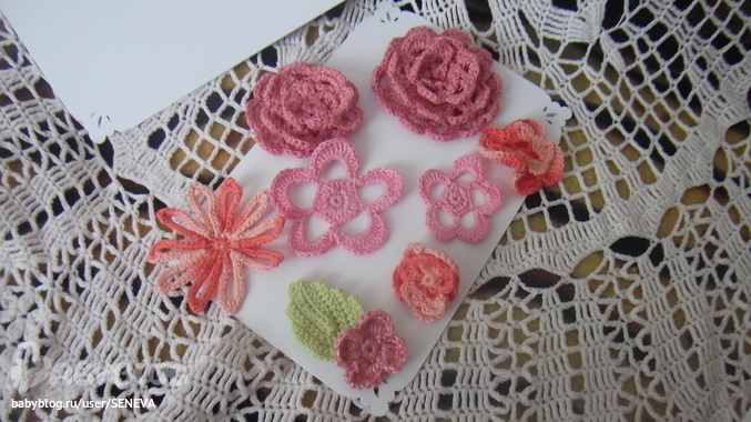 Вязаные цветочки, пять листочков матовой фотобумаги с продыроколенными уголочками )))