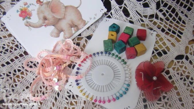 Иголочки, цветочек, деревянные бусины квадратные, лента с пайетками )))