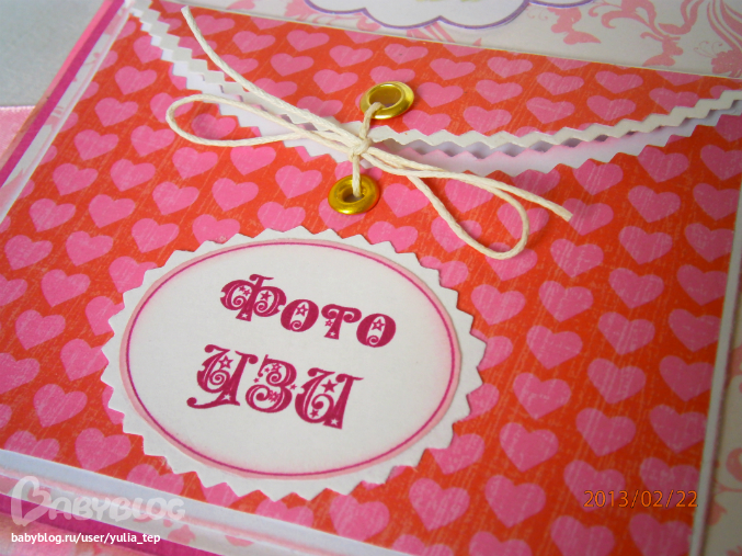 ну на шнурах тоже неплохо смотрится,так что зря переживала, а то эти кольца тоже уже стандартными становятся и нет креатиФФчика, а так норм). ярко-сочно-броско, Но смотри, Юль, все равно не увлекайся такими яркими цветами, пробуй себя и в нежных тонах, и в нейтральных, и в комбинированных, в конце концов). А так хорошо получилось, на альбомах хорошо руки набивать при составлении страничек и развитии себя,кстати)).это тебе не открытки лепить-дарить,и их судьба неизвестна, а альбом уже хранится будет годами и десятилетиями, если тока он не на одном скотче,конечно ;)...