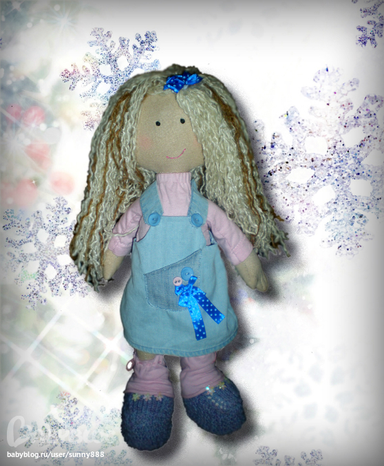 Вот такая получилась у нас девочка!!!! Сшилась для дочки......Из образа, рожденного в голове, практически ничего не осталось(((( Эта "манипуляторша" вертела мной как хотела)))) Шила я ее ну очень долго))))