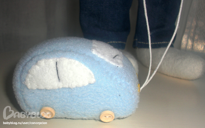 Оля, я ей пообещала такую же машинку сделать- она от нее в восторге! А твой доче пора еще друзей мягких нашить, а то Розочка сильно пострадает)))