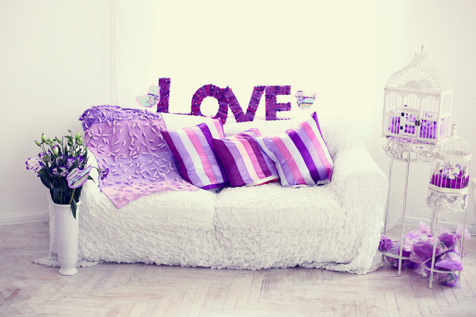 Диванчик украшен пледом.Плед в стиле пэчворк из 4-х видов ткани, расшит фигурной пряжей.