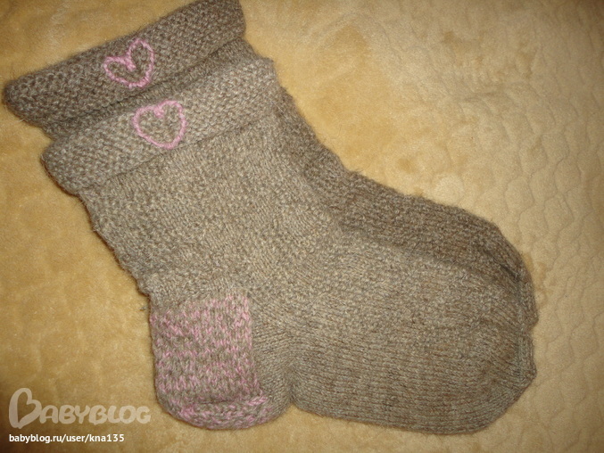 Эх и попотела я над этими носками. Это вторые мои носки и мне непременно хотелось связать их мужу. Пошла в магазин, спросила у продавцов какую лучше пряжу взять на носки мужу, дали мне Троицкую пряжу "Деревенька". 100% шерсть, колючая, блин)))))) в общем, захотела я свзять не просто носки, а с каким-нибудь узором, нашла в интернете подходящую схему, начала вязать, связала один носок, второй носок подходил к завершению, на календаре 11 февраля...и нитки закончились, я бегу в магазинчик, где покупала пряжу, а мне отвечают, что больше нет такой пряжи и скорее всего больше не будет...я в ступоре, пришла домой и распустила оба носка до пятки (т.е пятку как раз тоже распустила, она у меня из двойной нитки была)....и к ночи с 13 на 14 февраля я их довязала))) а когда я их довязала, то обнаружилось, что носки получились разных цветов. один чуть темнее, другой - светлее)))) но все равно я очень довольна, опыта набралась выше крыши))))))