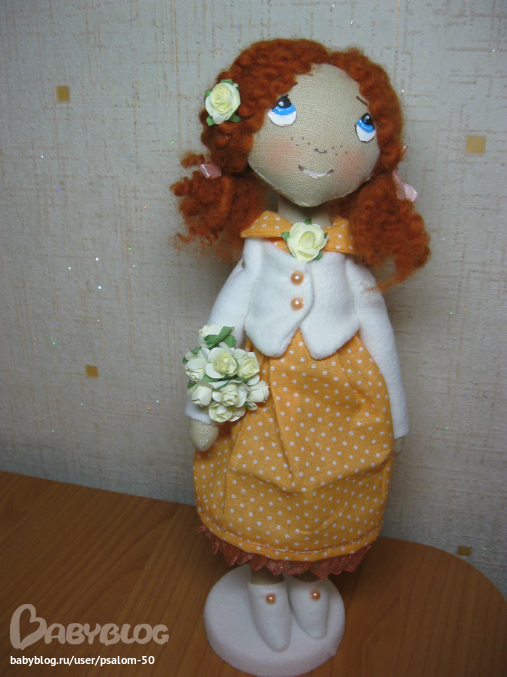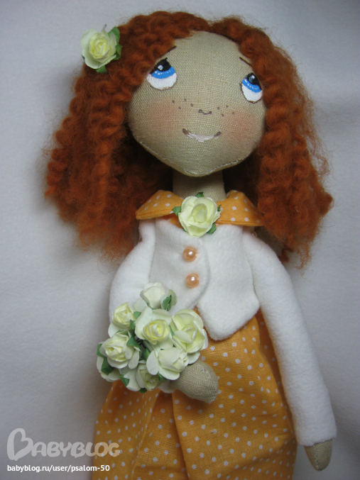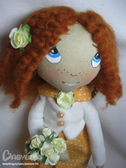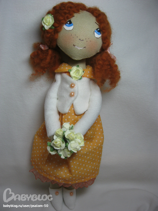 Спасибо Галечка.самаой понравилась эта работа=))Прям любуюсь и хочется сново шить куколку....образ пришел прям в процессе шитья,а имя сыночек дал,а в контакте нашлась девушка,которая прям копия моей куколки и хочет её купить.вот так дела =)))