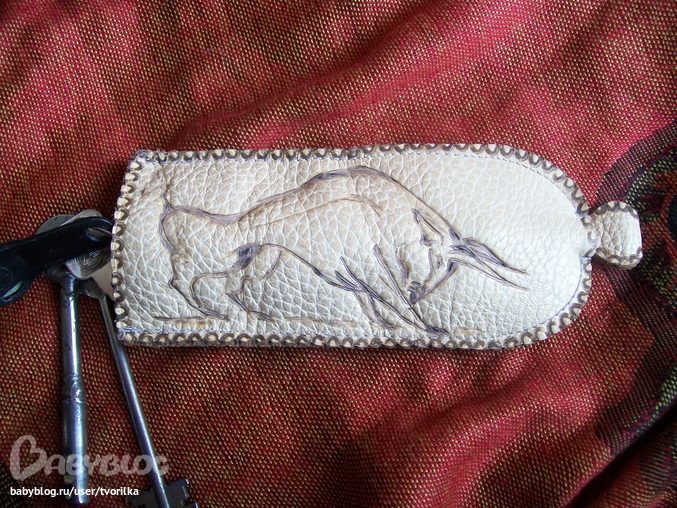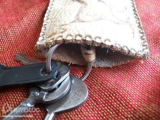 Изделия из кожиНа 23 февраля сотворила вот такую ключницу. Решила подарить ее мужу, что б со своей старой на молнии не мучился, а то застегивай - расстегивай.