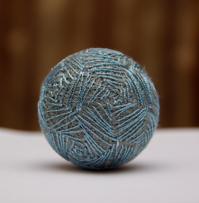 классическая японская техника предусматривает сотворение шариков из всякого домашнего барахла, модно из старых колготок. Но я оценила свои силы по созданию идеального шара из тряпья (а это довольно важно для красоты рисунка), и купила пенопластовые шарики, и их обмотала катушечными нитками. А уж на такой основе делается вышивка.