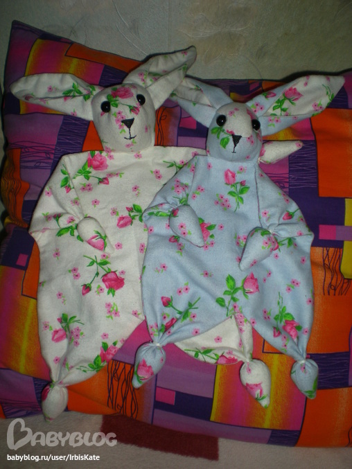 Хорошие получились. Я тоже сшила зайку- засыпайку по образцу у этой девушки. У нее 2 зайки- как ваш и как мой