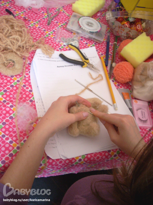 решили встретиться, а поводом оказался МК по вязанию игрушки! Я очень сильно переживала, что не смогу правильно донести нужную информацию, подошла к етому вопросу основательно - приготовила схемку, собрала все нужные инструменты и материалы .....................и в путь!!!!! Меня Катя приняла радушно, с самого первого момента почувствовался позитив от етой милой девушки! а самое главное - огромное желание состворить милаху-мишку! я постаралась как можно понятней и легко обьяснять, а ето самое тяжелое (я-то с легкостью понимаю то, с чем работаю!). С уверенностью могу сказать - у нас получилось! Моя ученица сделала то, что я ожидала от проведения мной МК