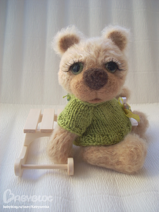 такой малышастик еще совсем, вот поэтому стоять и не умеет еще толком, а взгляд то какойи наивный и любопытный. мишка очаровашка!!!
