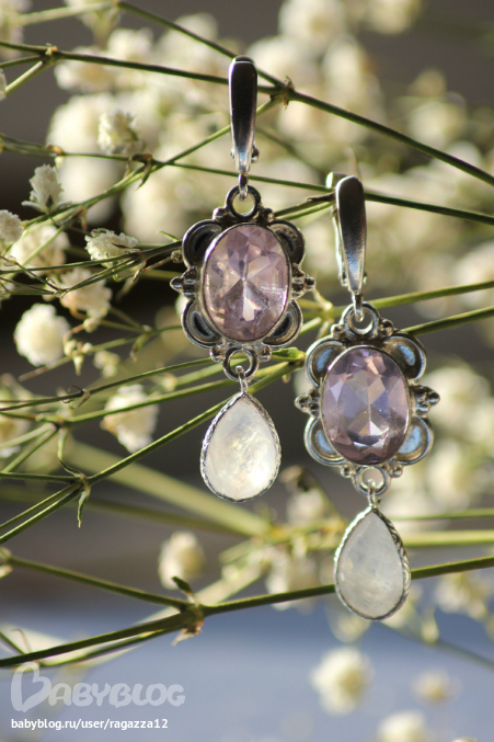 Серьги "Весна"( по мативам "Визит") Кварц,лунный камень,серебро 925. Продаются ,без повтора