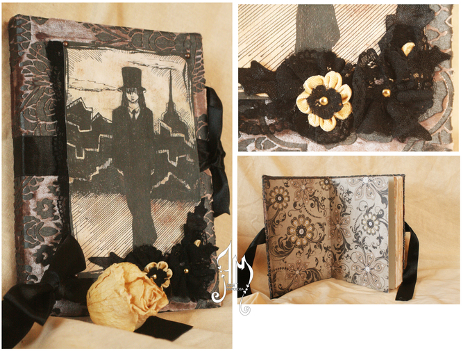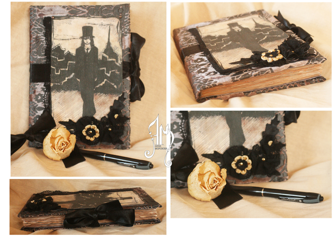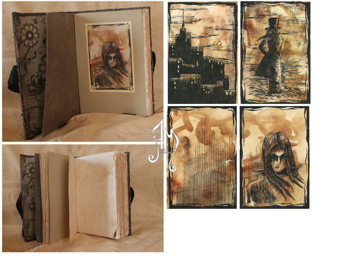Графика выполненп вручную, специально для этого блокнота. страницы состарены в ручную, тонированны кофе.