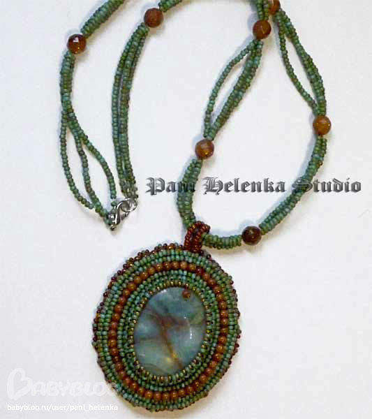 Кулон. Вставка – халцедон, в составе авантюрин, бисер Чехия.