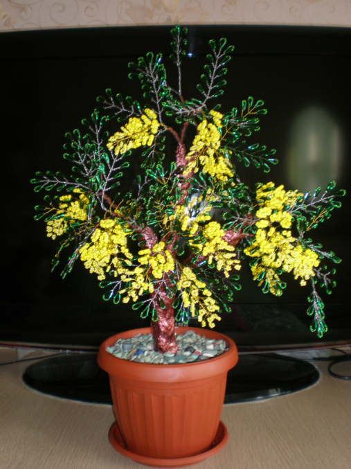это дерево с жёлтыми гроздьями моя первая работа из бисера.