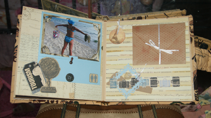 Альбом вмещает 20 фото (одно из которых на обложке. Есть конвертик для памятных мелочей, на последнем развороте кармашек для билетов или карт. Смотрим: