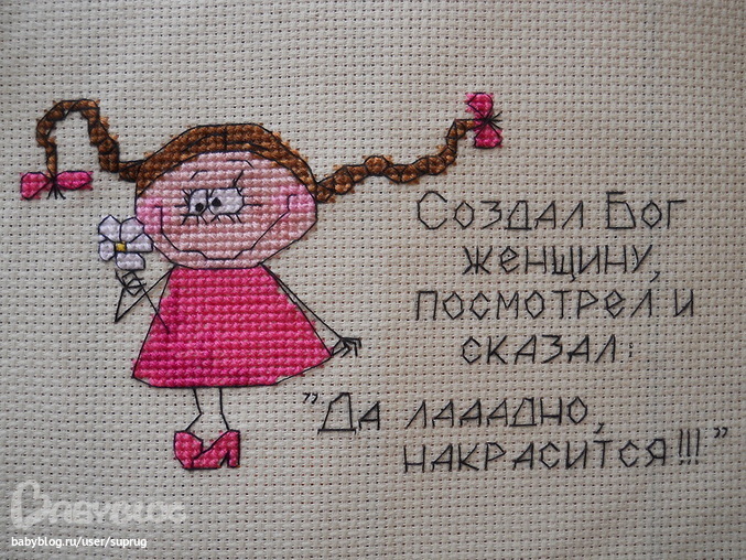 Хочу вышить подруге ко Дню рождения несложную веселую картинку с жизнеутверждающим тектом. Буду очень признательна за помощь