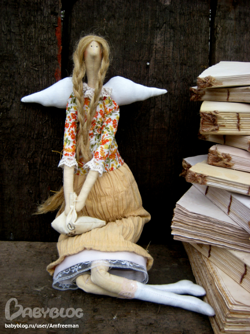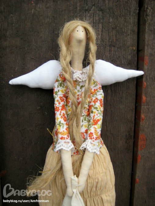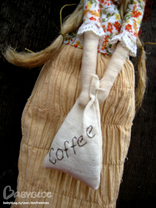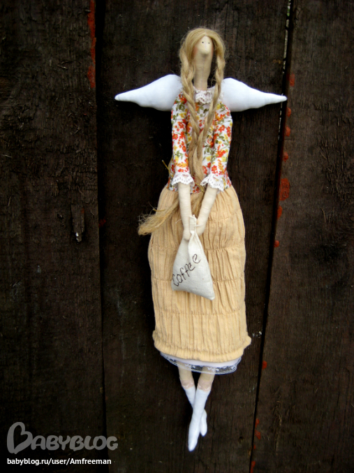 Интерьерная кукла по мотивам Т. Ф. Этот ангел в руках держит мешочек полный кофейных зерен. Волосы искусственные, сшита из натуральных тканей. Стиль тильда
