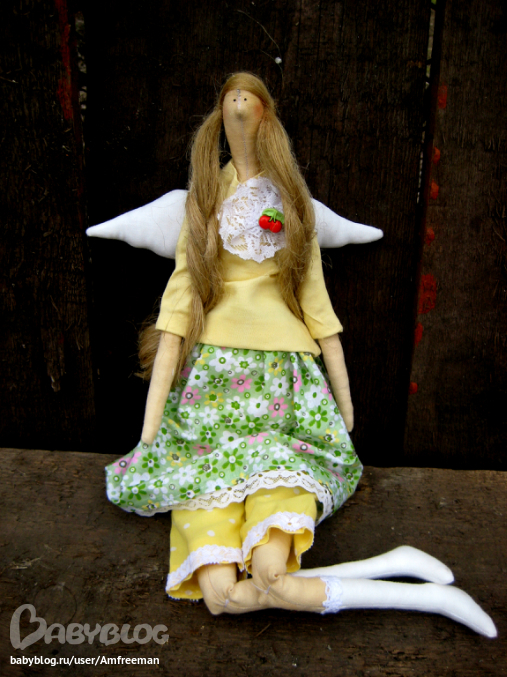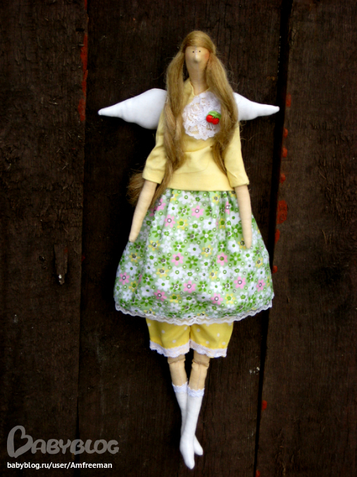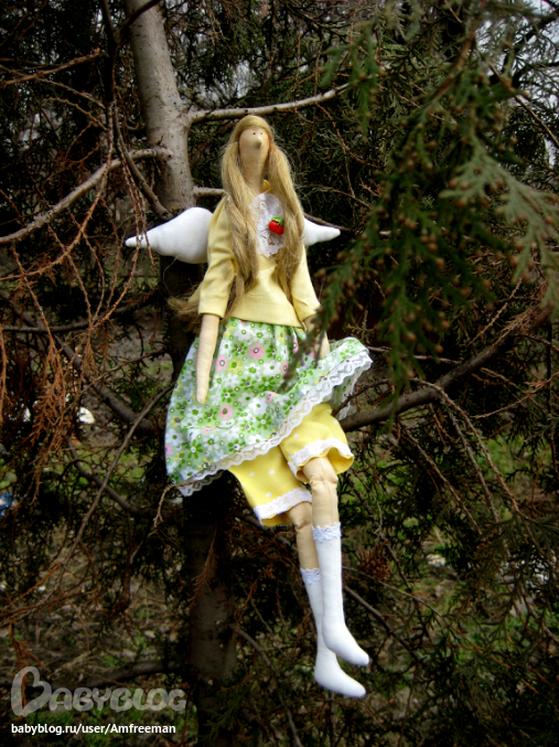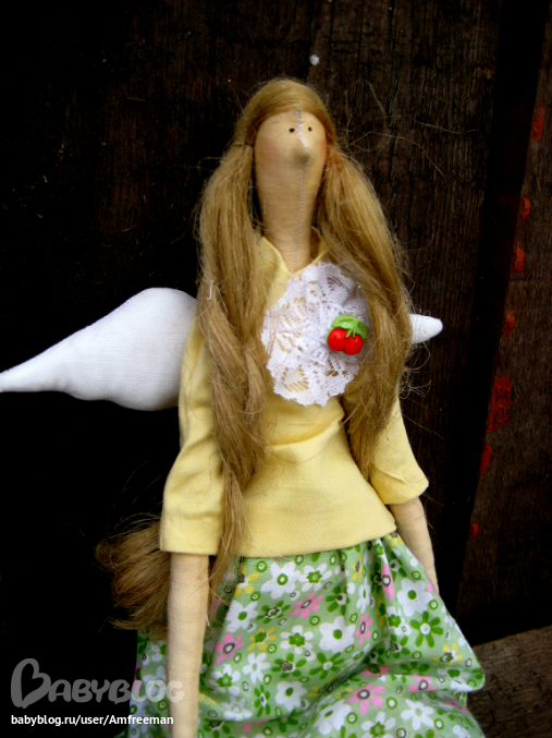 Интерьерная кукла по мотивам Т. Ф. Этот ангел обязательно принесет в ваш дом весну,а с ней Хорошее настроение,много позитива и новые впечатления) Волосы искусственные, сшита из натуральных тканей. Стиль тильда