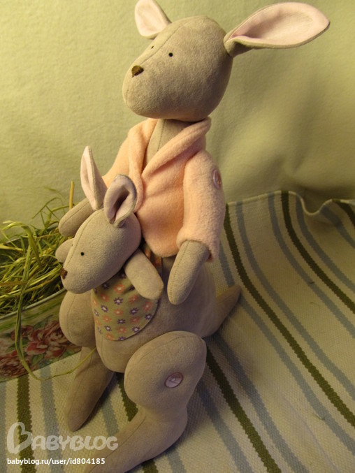 Игрушечный мир - животныеВот появились у меня такие велюровые кенгурушки. Мамочка с малышом.Приятные на ощупь, мягкие, плотненькие. Что-то последнее время не шьются у меня работы по одиночке, все в паре. Пользовалась подсказками МК от Ясмин, спасибо ей большое!