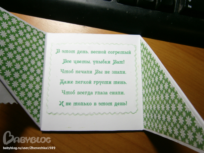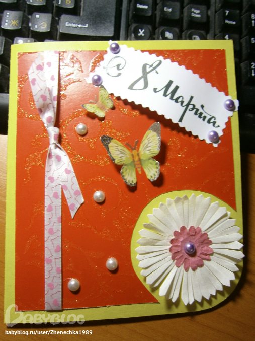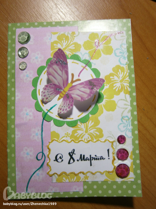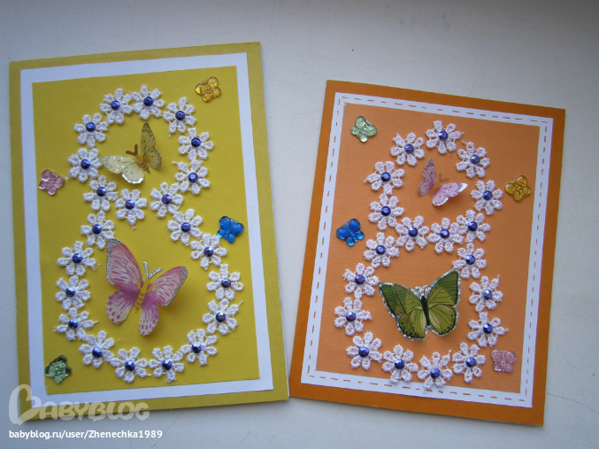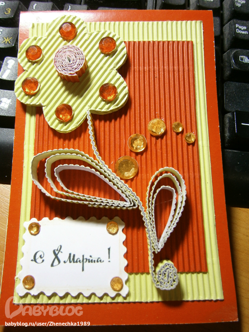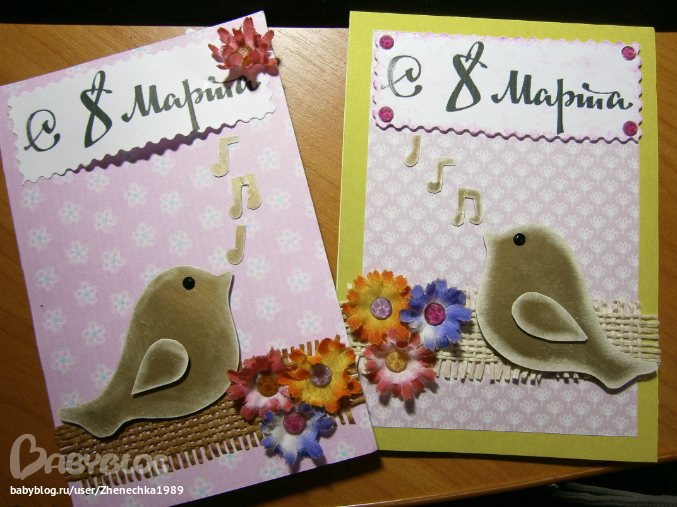 на этой неделе нашло на меня вдохновение и не просто нашло, а нахлыныло, вот и сотворились у меня такие открыточки к 8 марта, доча принимала очень активное участие, так что если где-то кривовато, строго не судите)))
