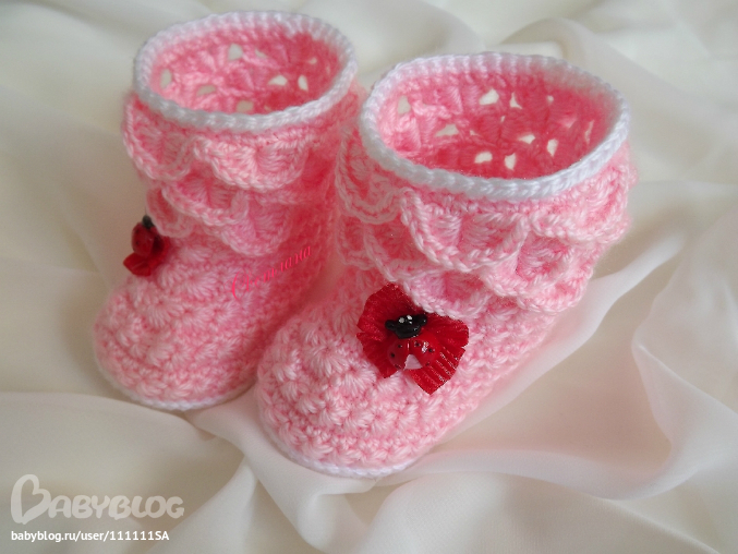 Оленька, спасибо огромное! я сама вяжу только третий год- пока в декрете, и мало что знаю о вязании, но могу точно сказать, что носочки носятся замечательно, а главное не сползают с ножки ребенка. Все носочки связаны по одному описанию http://babyknitting.ru/2010/09/15/nosochki-detskiesvyazannye-kryuchkom/ -спасибо автору. Только бело-розовые я связала ССН в каждый столбик,добавила бахрому- вот и все...УДАЧИ!!!!!!!