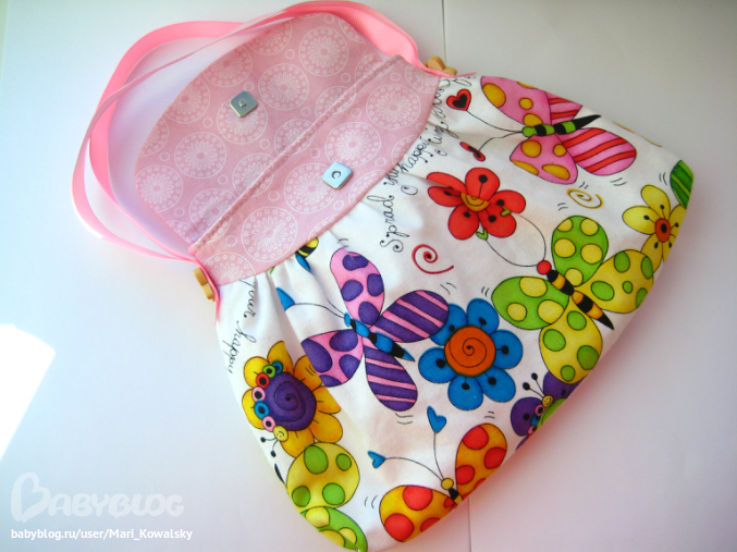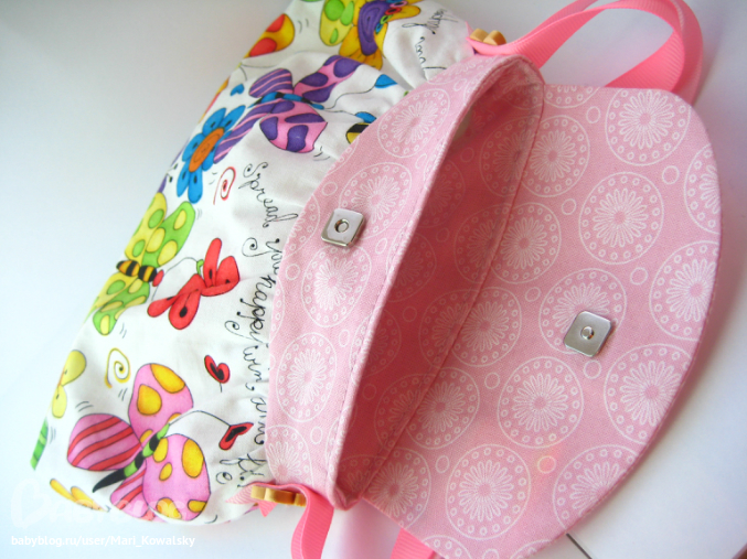 Если будете делать много складочек, как у меня, лучше делать полукруглую кокетку, мне ее было очень сложно строчить.. ну а вообще я не училась шитью, так что наверняка ошибок наворотила кучу )) в принципе все как в обычных сумочках ) ну и еще кнопку в клапан надо вставить до того, как сумка будет собрана )))