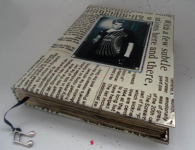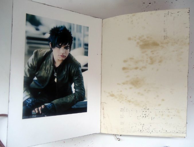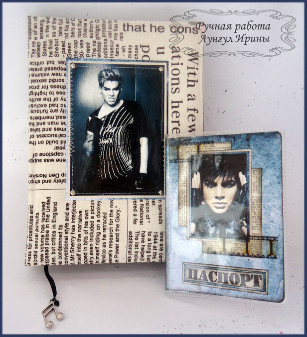 СкрапбукингВот "коллега" по группе в контакте заказала для своей дочери к 8 марта. Дочь,как я поняла, поклонница Адама Ламберта. Вот с его фото и сделался блокнот (А-5) и обложка для паспорта. (фото выбирала сама заказчица) .Была просьба-никаких цветочков..да и декора сильно не "налепишь" на такую ткань "газетную") В общем, воот.... Поедет комплект уже сегодня к хозяйке...