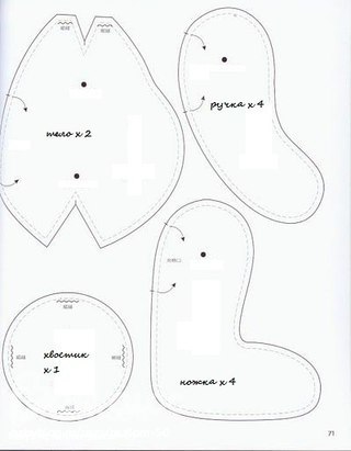 вот выкройка,только немного больше туловище и подошва для ножек я делала.