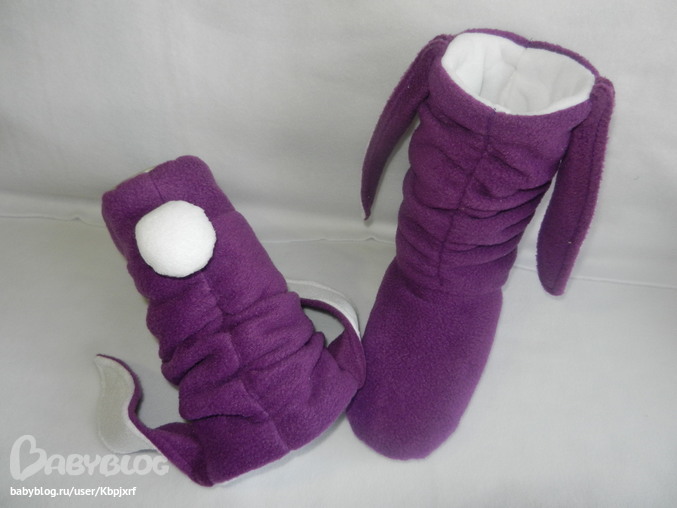 Серые зайки для Татьяны и гламурные с бантиком для её мамы, фиолетовые для её свекрови.