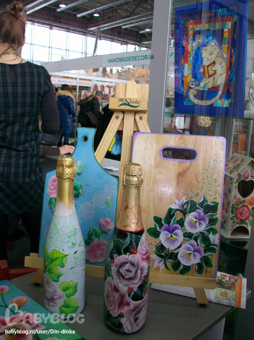 Рукодельные выставки, встречи рукодельниц в реале, отчеты с МК (не платных)Всем привет. Мы с мужем и дочкой, вчера побывали на выставке-продаже "Формула рукоделия". Конечно, подобные мероприятия не для мужчик и не будь рядом дочки и мужа, я бы задержалась там на порядок дольше, но с другой стороны, муж помог с ребенком, когда дочка устала от толпы и прогулок. А погулять было где и посмотреть было на что. В этот раз, на выставке было очень много наборов Китайского производства, много сладостей и приспособлений для кулинарии, заготовок для декупажа, а мелочевки, типа подвесочек и т.п., было мало или мне так показалось, потому, что глаза разбегались от более масштабных хотелок.