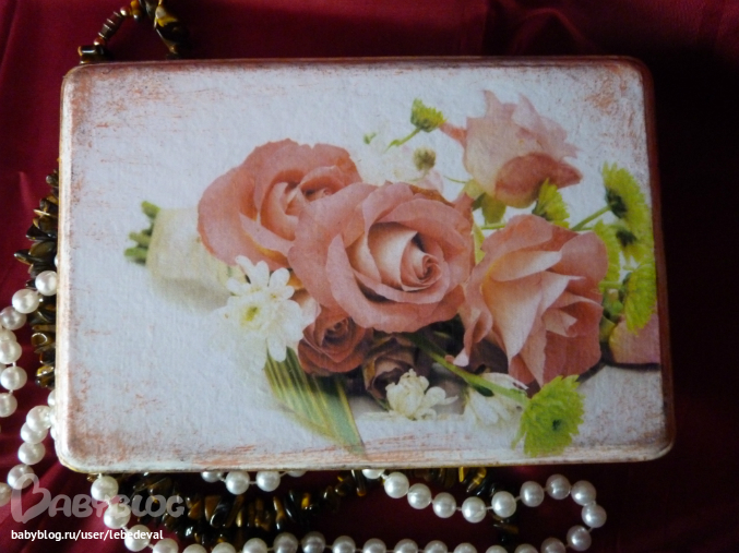 Любовь в Рукоделие 13 лет Шкатулка в стиле Шебби-Vanille или Декапе Декупаж Декупаж, шкатулка МДФ, лаковая распечатка, декупажный клей, акриловые краски, лак, золочение, работа с трафаретом, филигрань, имитация жемчуга, внутри оформлена бархатной бумагой. Посмотрите еще 20 записей на эту тему Отменить Ответить Алёна В. Какую все-таки вы красоту делаете! 06.03.2013 Ответить Любовь Спасибо большое! Я рада, что вам нравится!!! 06.03.2013 Ответить Lylichka так нежно.. 04.03.2013 Ответить Любовь Спасибо! 06.03.2013 Ответить Моя Киса в подарок подруге на 8 марта! Надекупажила Чаты Беременных Выберите чат: Январята-2026 Февралята-2026 Мартята-2026 Апрелята-2026 Майчата-2026 Июнята-2026 Июлята-2026 Августята-2026