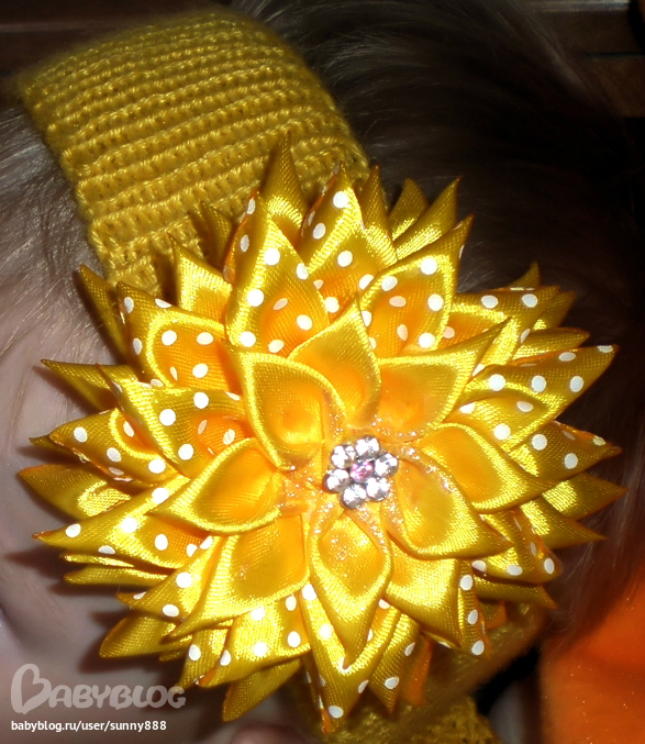 P.S. Спасибо девочкам, которые давали советы, по поводу крепления цветка к повязке!!!! Цветочек съемный, как я и хотела!!!!!!!! Сзади завязывается на нитки.....