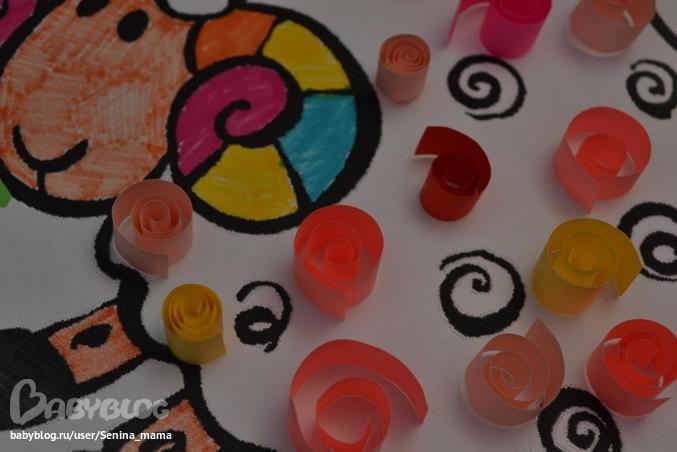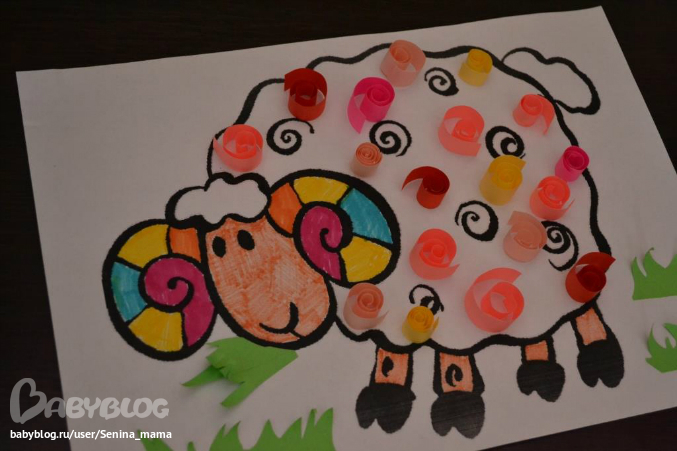 Замечательная идея.Можно еще из гафрированной бумаги накатать шариков маленьких и приклеить их на барашка,тоже интересный эффект получается.Да и дети любят повозиться с этими "катышками".