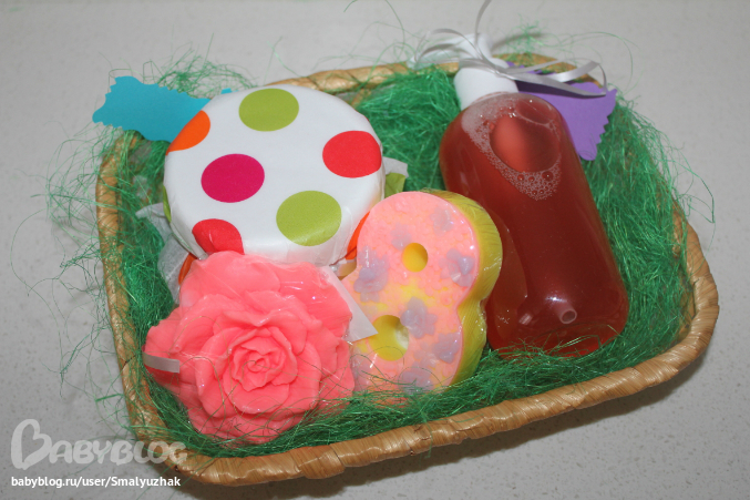 Набор 900р гель для душа+скраб большой+роза+8 в корзинке