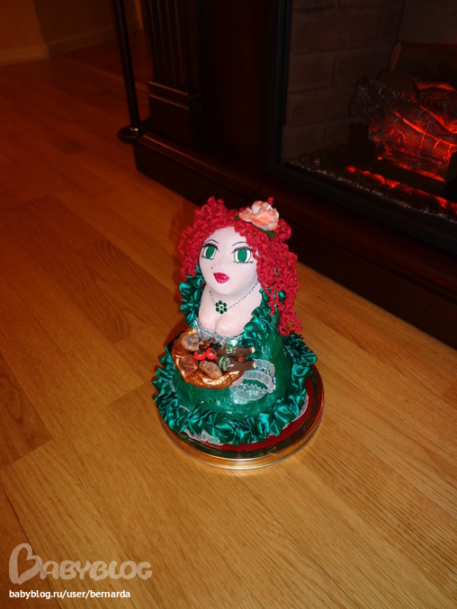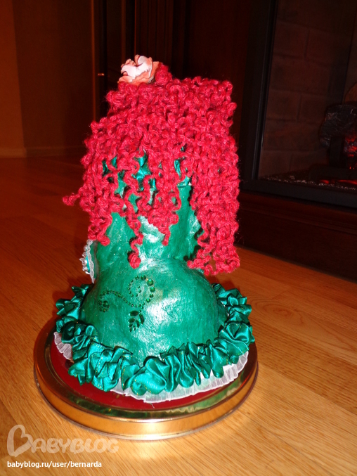 Долго делала... (Соленое тесто, гуашь, распущенный носок Мироши, стразы, ленточки, бутылочки из пластилина)