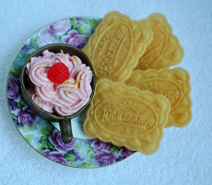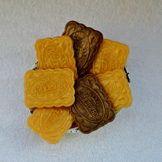 А выглядит как настоящее потому что форма для мыла была сделана с настоящей печеньки "Юбилейное":))