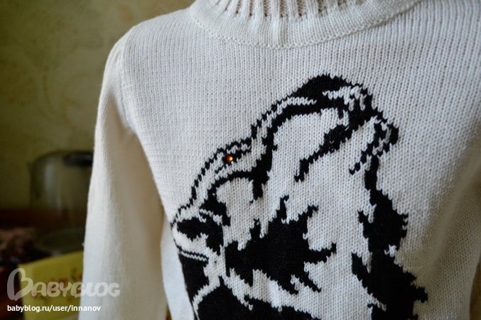 очень красиво связан волк, просто суперррррр, только межно карман на вороте поменьше делать